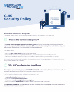 Stay confident in meeting CJIS requirements. The new CJIS Security Policy Standard in Compliance Manager GRC gives law enforcement agencies, justice departments and other organizations a clear and simple way to assess, document and maintain compliance with the FBI’s rules for protecting Criminal Justice Information (CJI).