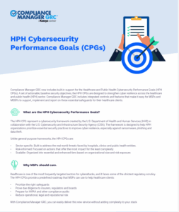 This datasheet explores the integrated controls and features built-in to Compliance Manager GRC to facilitate compliance with the Healthcare and Public Health Cybersecurity Performance Goals (HPH CPGs), a voluntary framework created by the U.S. Department of Health and Human Services (HHS) for healthcare organizations.